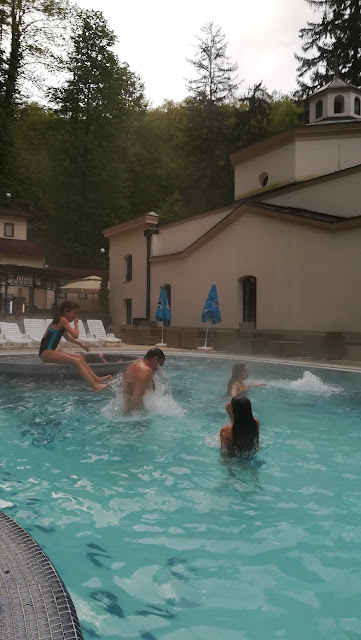 Banja ima spoljašni bazen u kome je temperatura vode 35.5 C, kao i bazen koji ima zatvoren i otvoren deo, sa temperaturom izmedju 35.5 C i 36.5 C (bar je tolika bila prilikom naše posete). Bili smo naravno na oba i fantastično se proveli. Mami i tati je posebno prijala ovako topla voda, tako da ću joj se rado vratiti :). Mišice su uživale.